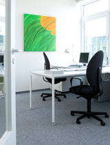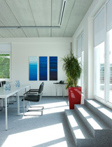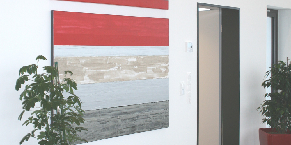 For industrial and commercial customers, office buildings and public facilities we take on the design of colour, space and mood concepts. We integrate company logos, name plates and CI colours.